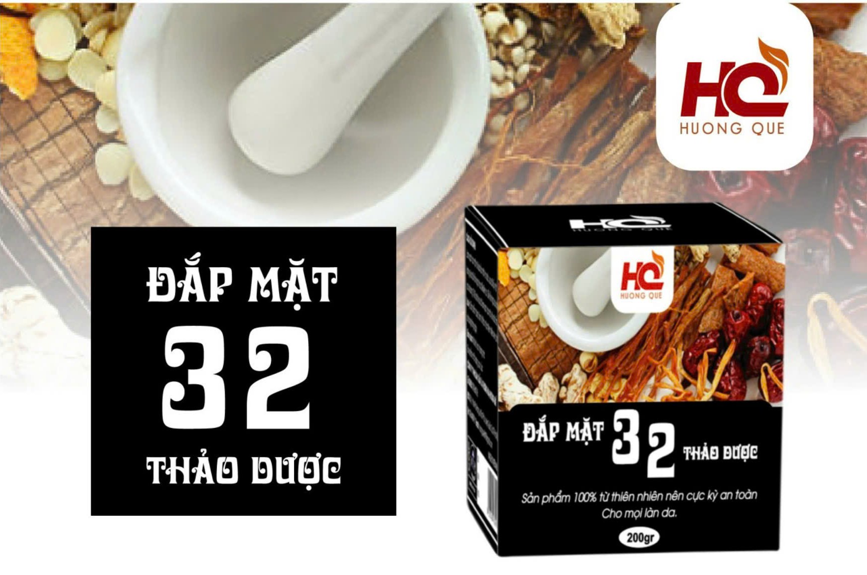 Thành phần: Hỗn hợp đắp mặt 32 vị thảo dược, được chiết xuất từ 32 vị thảo mộc, Cam thảo, Hoa Tam Thất, Hoa cúc, Kim ngân, Xạ Vàng. Mướp đắng, râu ngô, chùm ngây, Nấm linh chi, Hương quế... Cô đặc tinh luyện cực kì an toàn cho làn da (các bà mẹ sau sinh và các chị mang bầu dùng thoải mái luôn nhé)